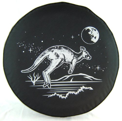 Kangaroo on 30" Black Denim Textured Vinyl Tire Cover Feature
